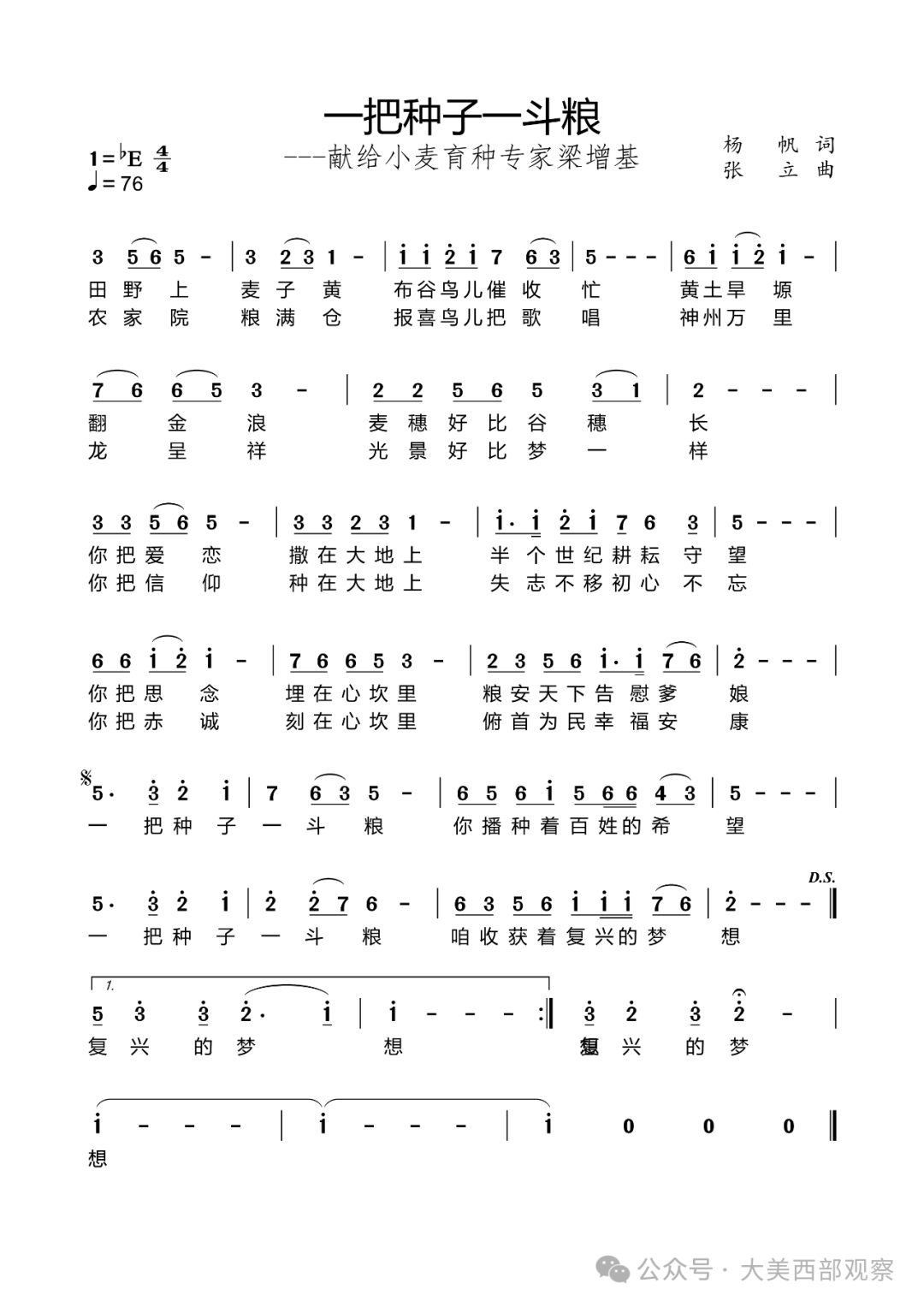 正在这首献给小麦育种专家梁增基的赞歌中,词做者以朴实而充满地盘气味的言语,建立了一幅科学家取大地、种子取人平易近、歌词超越了简单的人物,为对一种生命姿势的礼赞。